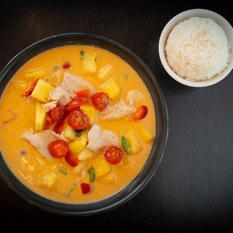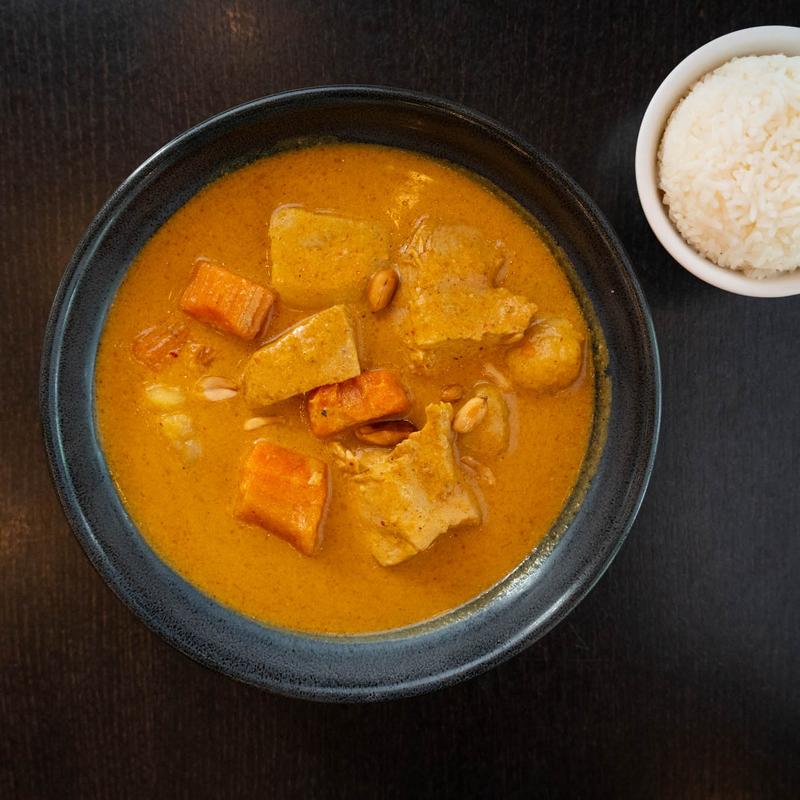 ...For my entree, I ordered the green curry with chicken. It was absolutely delicious. The spice options are 0 to 3. I decided to play it safe and order spicy level 1. Next time I would move up to level 2. I'm not great with spices and I didn't find level 1 that spicy. If you are bringing a large party, be aware that they can only split the bill 5 ways. I can't wait to return!